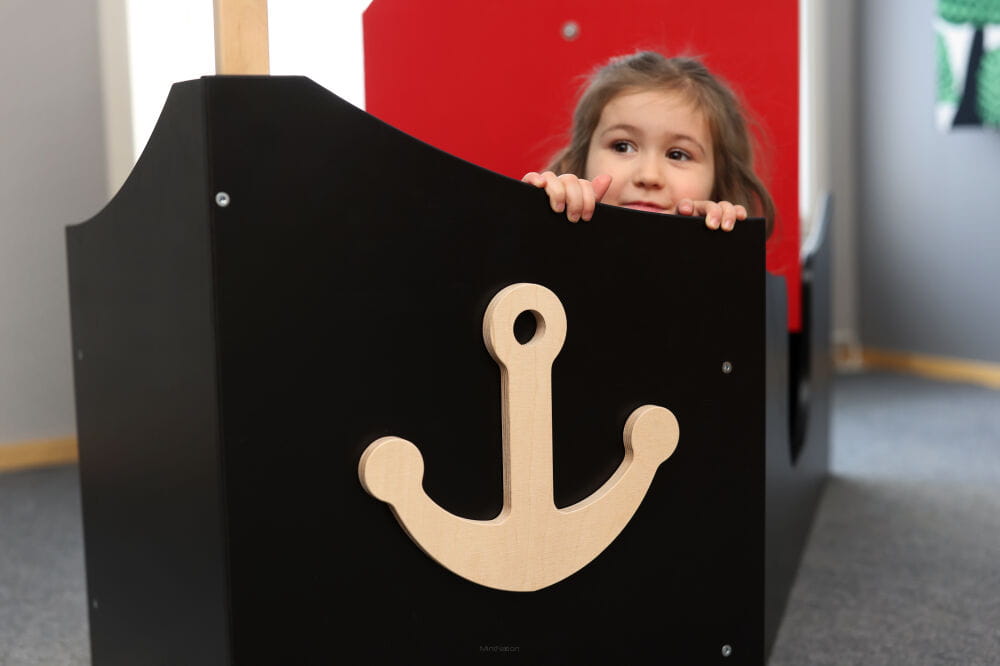 Micki drewniana duża łódka statek piracki mebel edukacyjny do sali zabaw