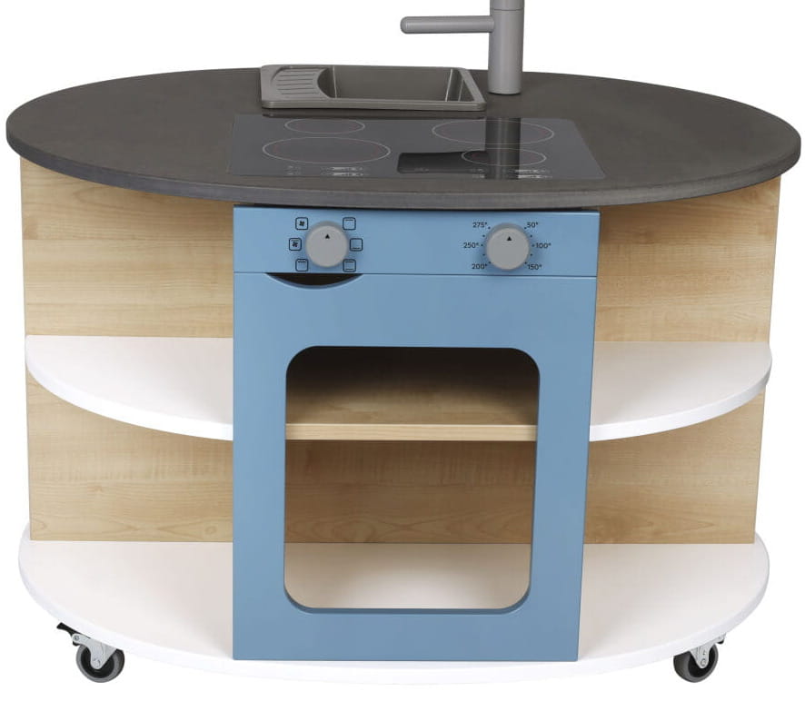 Niezwykła wyspa kuchenna zachęca dzieci do kreatywnej swobodnej zabawy w odgrywanie ról. Dzięki modelowi wyspy dzieci mają dostęp do kuchennego blatu z każdej strony mebla.