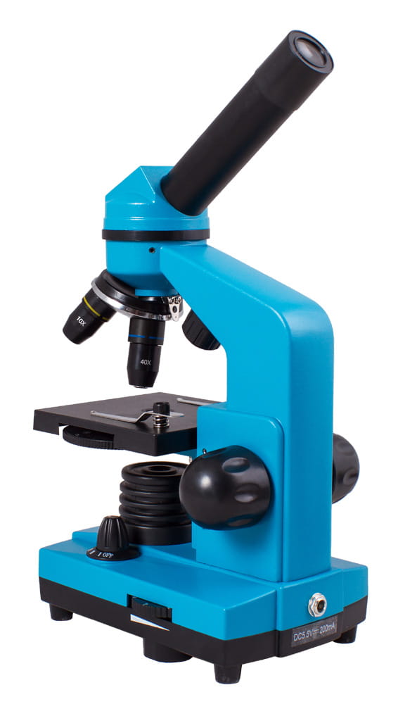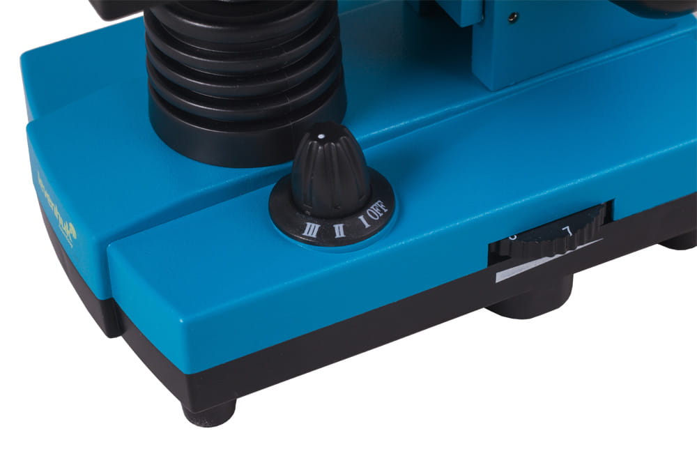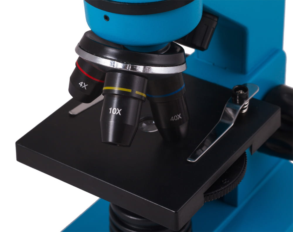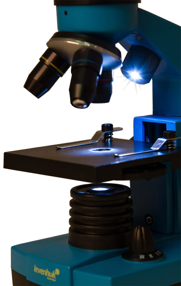 Mikroskop 2L Azure / błękitny z serii mikroskopów Levenhuk Rainbow 2L – wysokiej jakości szkło optyczne, ergonomiczna konstrukcja i zestaw doskonałych akcesoriów K50 gratis.