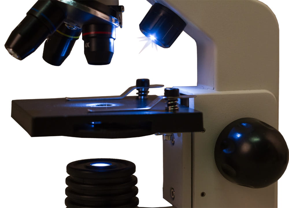Mikroskop 2L Moonstone / szary z serii mikroskopów Levenhuk Rainbow 2L – wysokiej jakości szkło optyczne, ergonomiczna konstrukcja i zestaw doskonałych akcesoriów K50 gratis.