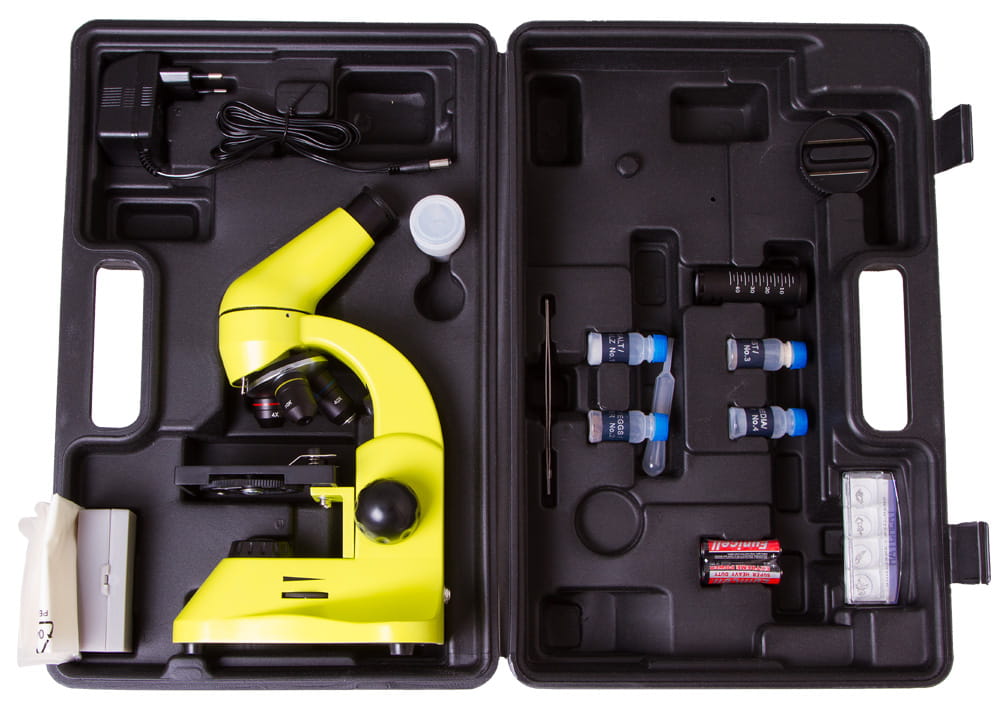 Mikroskop 50L PLUS Lime / limonkowy z serii mikroskopów Levenhuk Rainbow 50L PLUS – jasne, stylowe mikroskopy z metalowym korpusem doskonałe dla początkujących eksploratorów mikrokosmosu, a także doświadczonych badaczy.