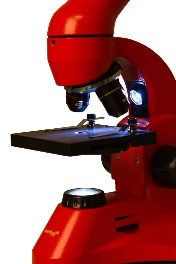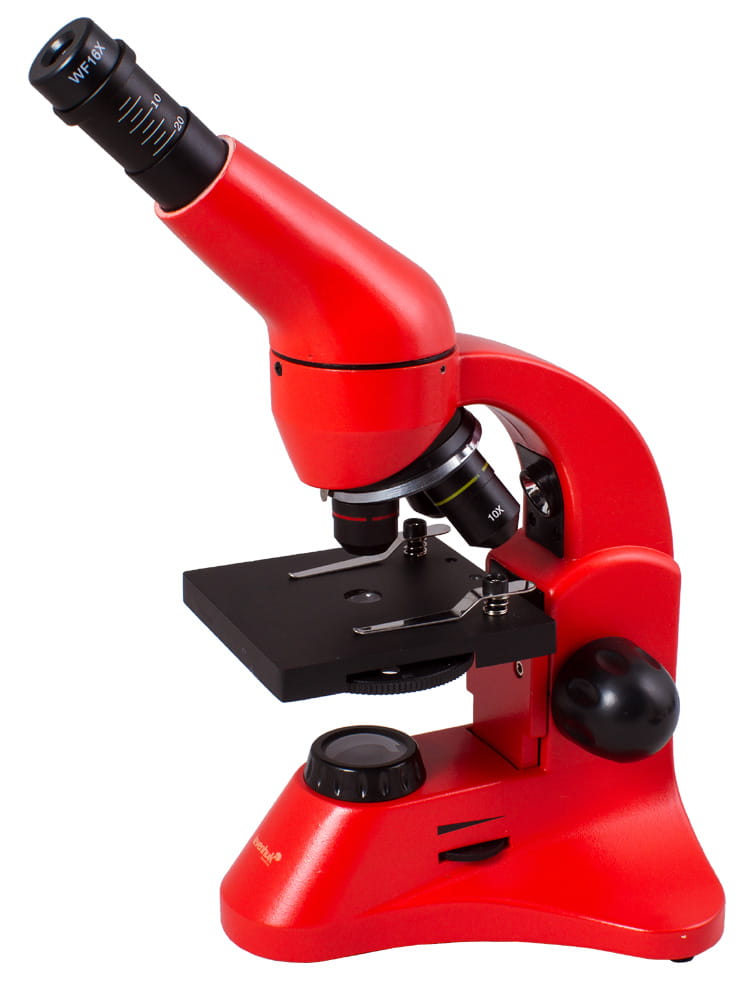 Mikroskop 50L PLUS Orange / pomarańczowy z serii mikroskopów Levenhuk Rainbow 50L PLUS – jasne, stylowe mikroskopy z metalowym korpusem doskonałe dla początkujących eksploratorów mikrokosmosu, a także doświadczonych badaczy.