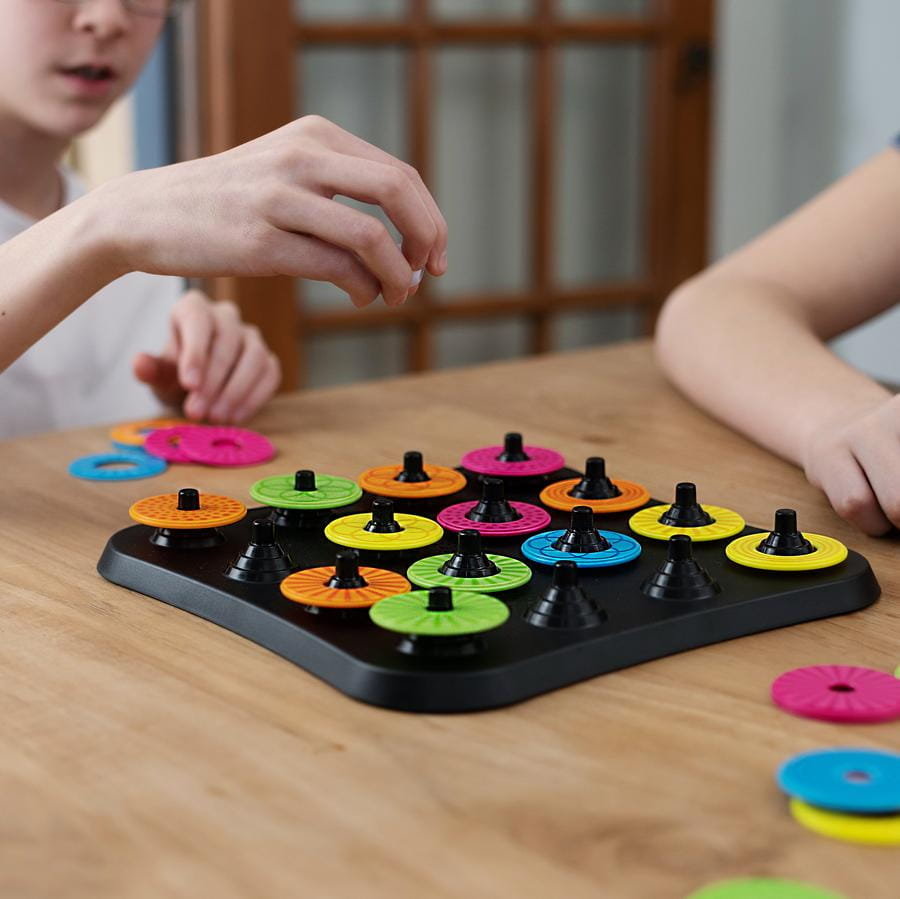 Gra strategiczna Morphy od Fat Brain Toys to zabawa logiczna dla dzieci ćwicząca spostrzegawczość i logiczne myślenie. Zaplanuj swoją kolejkę na kilka ruchów do przodu, aby zdobyć przewagę nad pozostałymi graczami zebrać jak najwięcej kolorowych dysków. Wyszukuj podobieństwa, nie zrażaj się różnicami - zbierz 2 do 4 graczy i spróbujcie swoich sił w grze Morphy, gdzie zmiana jest konieczna dla osiągnięcia sukcesu!