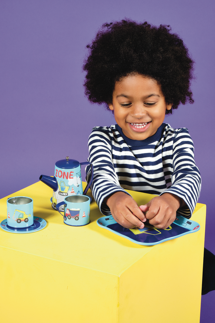 Zestaw do herbaty ozdobiony wspaniałymi, kolorowymi ilustracjami z motywem Na Budowie to gwarancja świetnej zabawy! W kolorowej skrzynce z uchwytem znajdziecie: 2 kubki, 2 spodki, dzbanek z pokrywką oraz tacka do serwowania. Zestaw herbaciany pozwala na zabawę w dom i odgrywanie ról, stanowiąc również świetną propozycję zabawy dla dzieci w grupie. Uczy umiejętności społecznych i nawiązywania relacji. Walizeczka wyposażona jest w poręczny uchwyt, dzięki czemu można je łatwo przenosić z miejsca na miejsce.