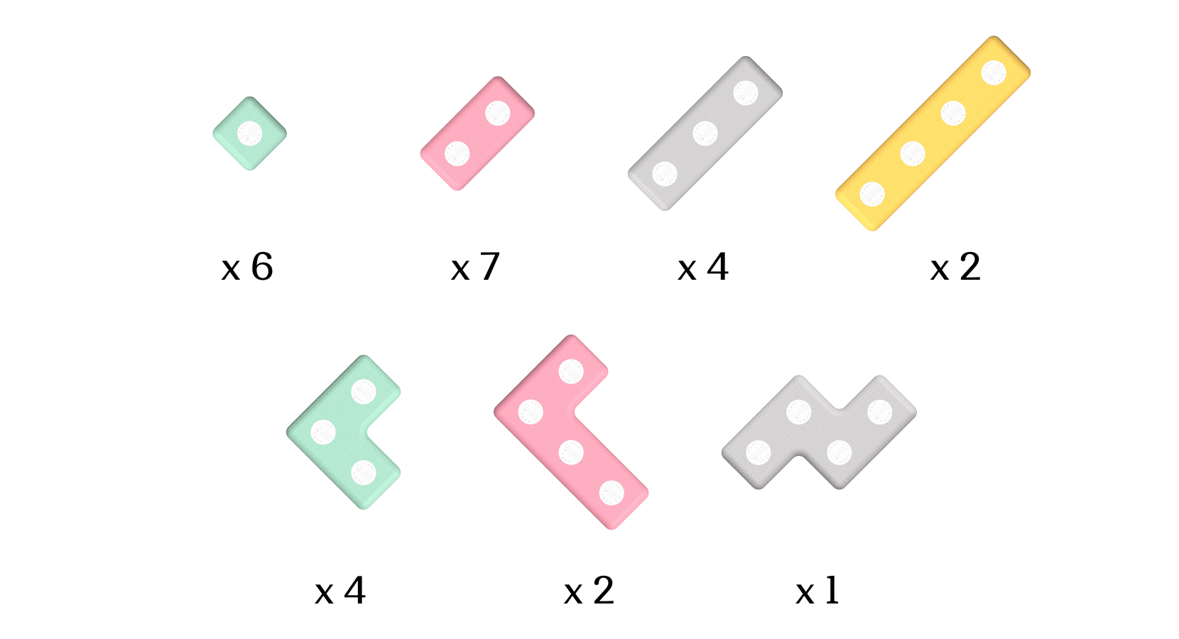 Lekkie duże klocki, które przyciągają się do siebie, dzięki temu można je łączyć ze sobą ze wszystkich stron. Nie mają ostrych krawędzi, są wygodne do uchwycenia dla małych rączek i przyjemne w dotyku.