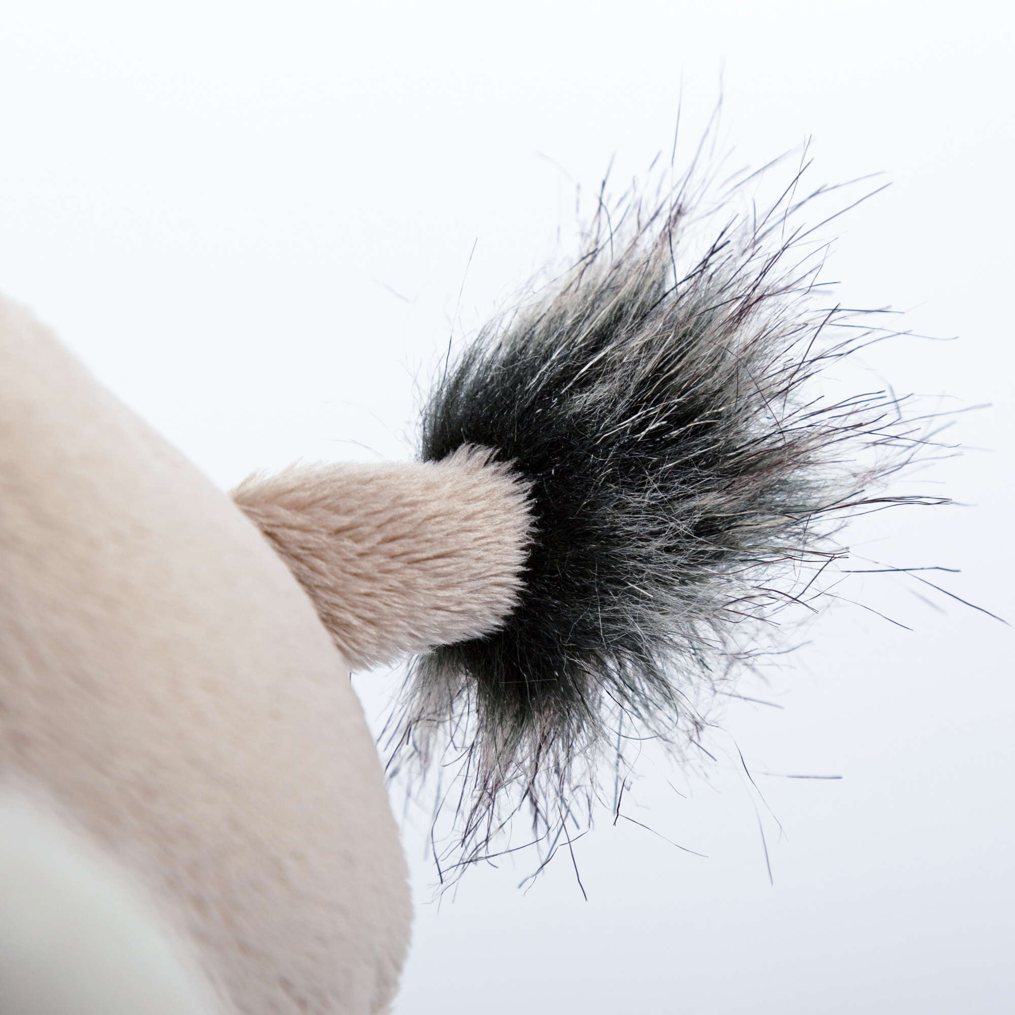 Osiołek ma 31 cm długości, można go prać w pralce w łagodnym cyklu w temperaturze 30 stopni bez użycia środków zmiękczających.
