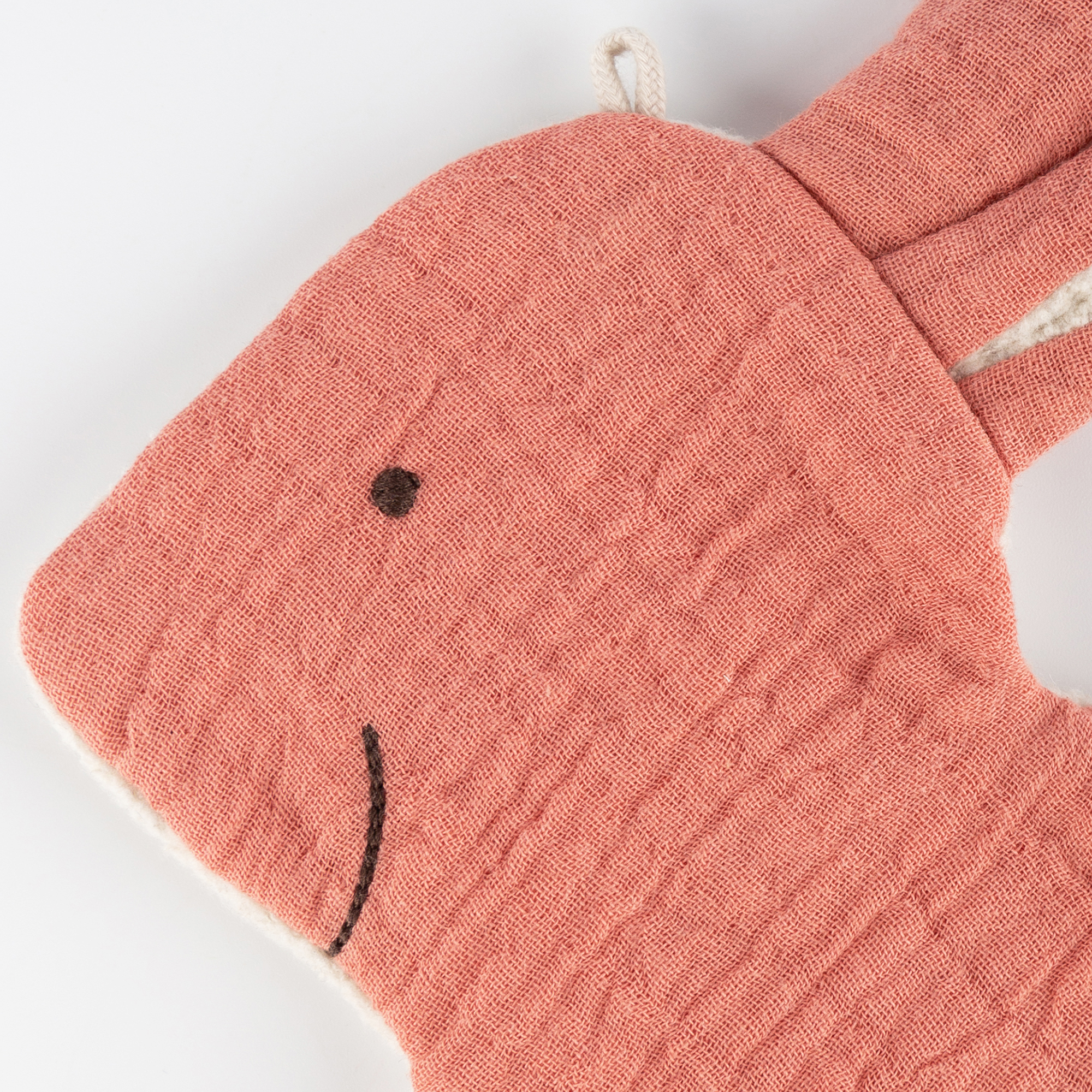 Wykonany z muślinu (100% bawełny) szeleszczący Króliczek zaprasza maluchy do odkrywania, przytulania i zabawy. Płaski kształt i wyjątkowa miękkość materiału sprawiają, że zabawka zachęca do przytulania, jest łatwa do uchwycenia i trzymania przez małe rączki. Muślin jest naturalnie miękki, miły w dotyku, bardzo chłonny, trwały i odporny na zużycie. Dzięki wszytej szeleszczącej folii ta pierwsza przytulanka angażuje zmysły maluszka, zapewnia bodźce dźwiękowe i wzbudza jego ciekawość. Liczne detale takie jak haftowana buźka, ogonek z supełkiem i duże uszy zapewniają świetne możliwości zabawy, ssania i głaskania.