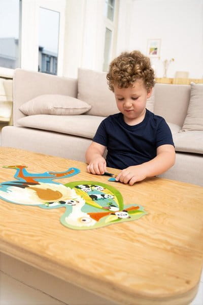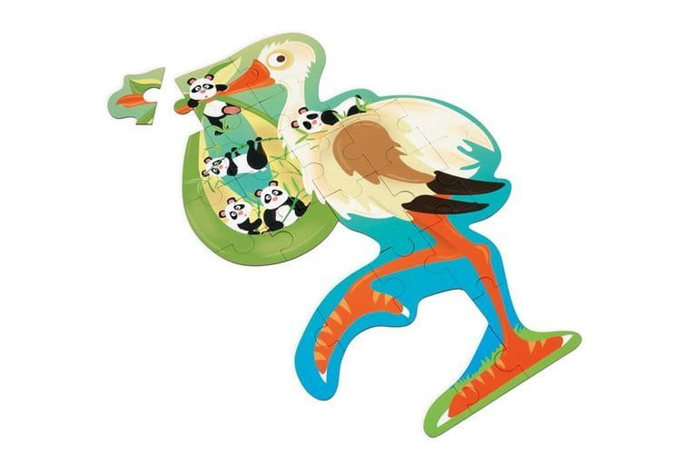 Połącz poszczególne kawałki, aby stworzyć obrazek. Układanka BOCIAN pozbawiona jest tradycyjnej ramki, ale podkreślone kontury zwierzęcia sprawiają, że obrazek jest ciekawszy. Dziecko, które układa puzzle konturowe musi wykazać się nieszablonowym myśleniem i spostrzegawczością. Gdy puzzle będą gotowe zobaczysz, co nietypowego bociek trzyma w dziobie.