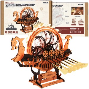ROBOTIME Drewniane Mechaniczne Puzzle 3D - Smoczy Statek Wikingów