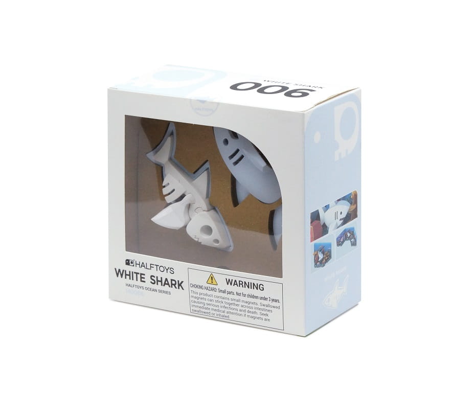 Magnetyczna figurka Rekina jest częścią serii Half-Ocean, składającej się z: ryby samogłowa, humbaka, żółwia morskiego, wieloryba i ryby piły - poszczególne zestawy można łączyć i stworzyć oceaniczną głębinę w zaciszu własnego domu.