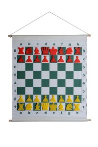 - Szachownica demonstracyjna wykonana z grubego winylu z wszytymi metalowymi płytkami