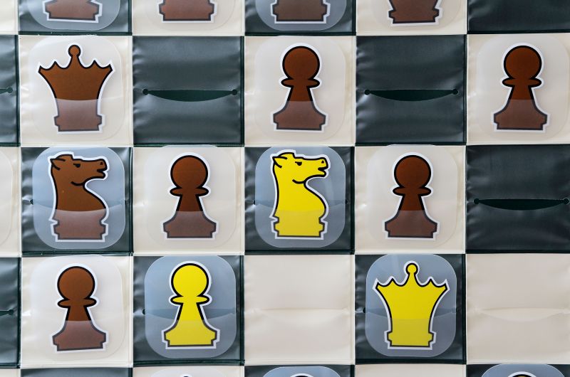 Szachownica jest zaopatrzona w przezroczyste kieszonki, w które wkłada się plastikowe karty, na których nadrukowane są symbole szachowe.
