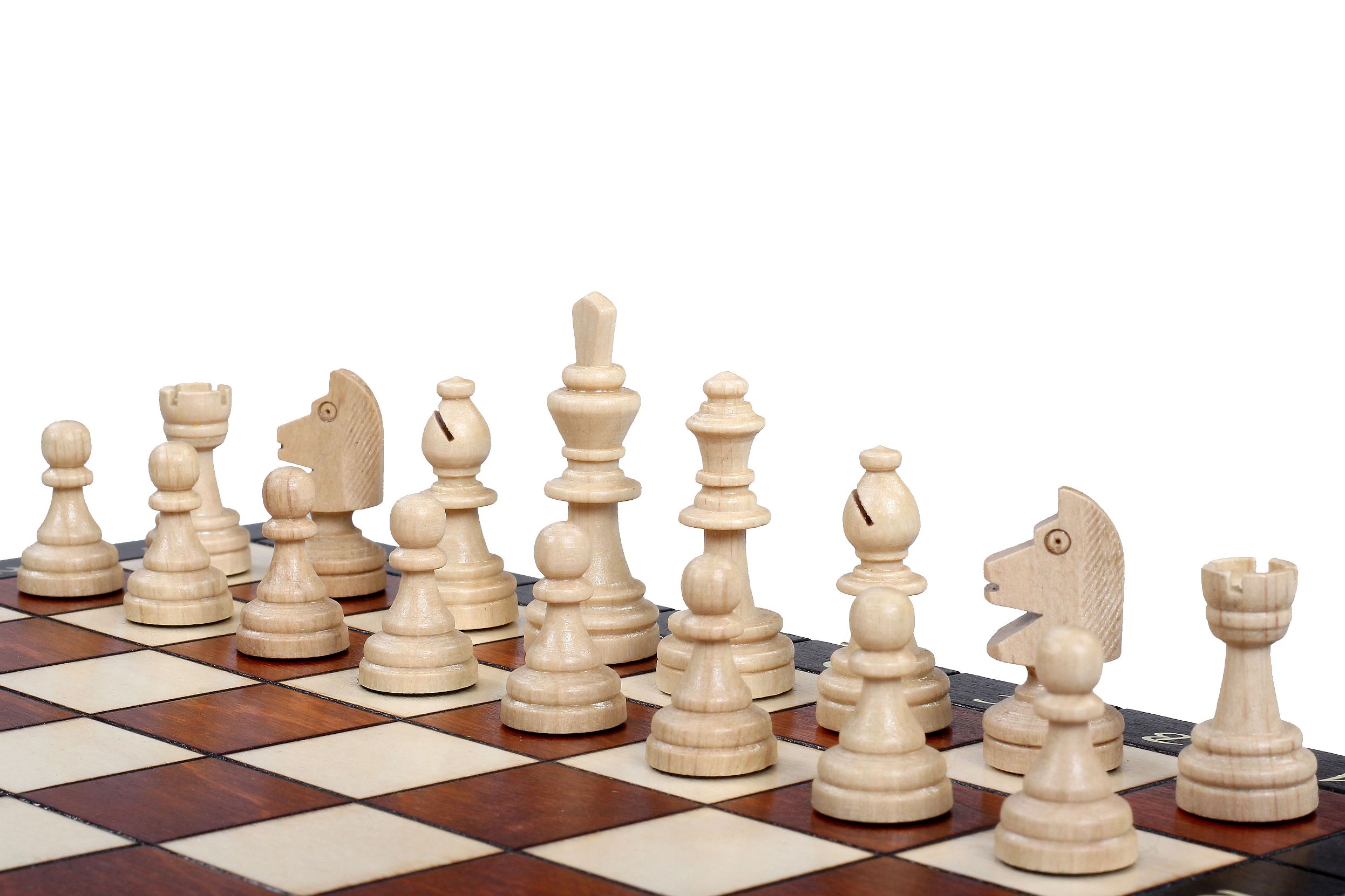 Składana szachownica została wyposażona w specjalną wkładkę na figury.