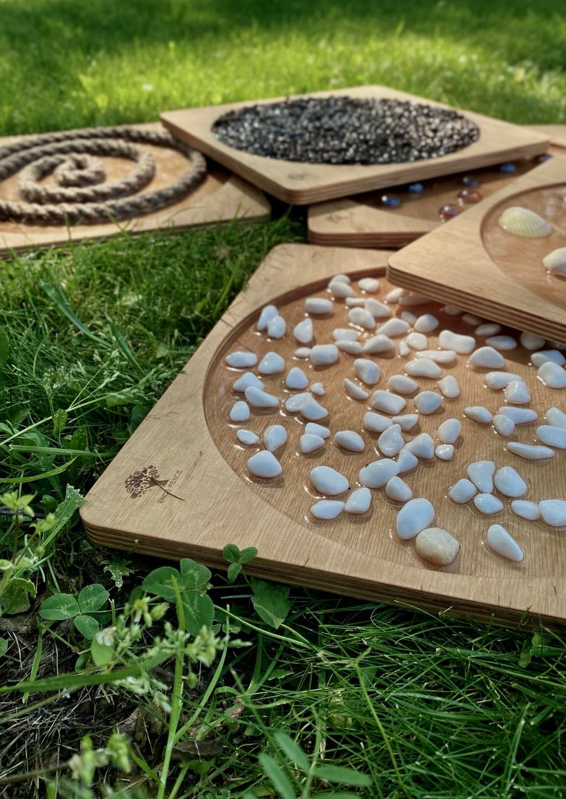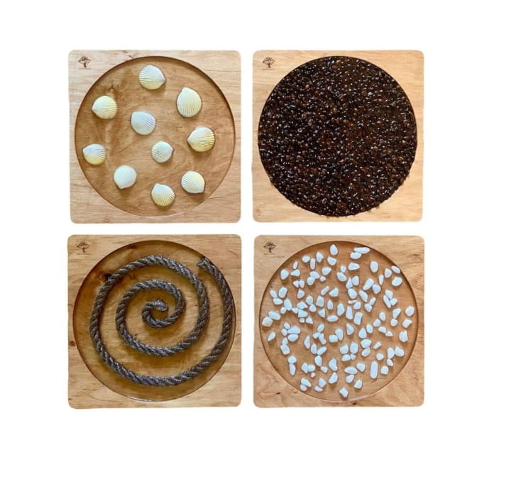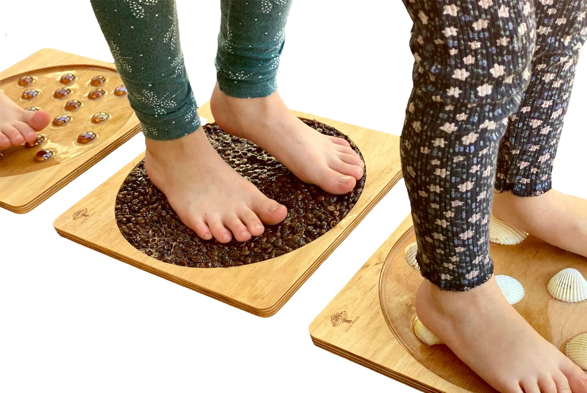Zestaw 4 dysków sensorycznych ze sklejki drewnianej do terapii integracji sensorycznej. Rewelacyjna zabawka, która uczy dziecko lepszego czucia własnego ciała i pełniejszej kontroli nad nim. Przydatna w gabinetach i poradniach podczas terapii integracji sensorycznej, pomocna także podczas rehabilitacji. Doskonała zabawka używana również w metodzie Montessori, pozwalająca lepiej zrozumieć swoje ciało. Kształtuje poczucie równowagi, rozwijając jednocześnie wszystkie zmysły. Poprzez fizyczny kontakt z rozmaitymi fakturami świetnie wpływa na wyobraźnię.