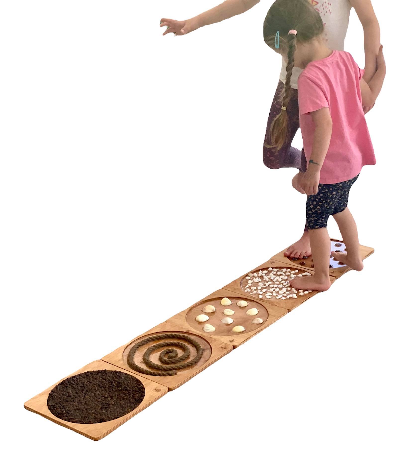 Ścieżka sensoryczna 4 dysków drewnianych do terapii SI Ence Pence naturalna
