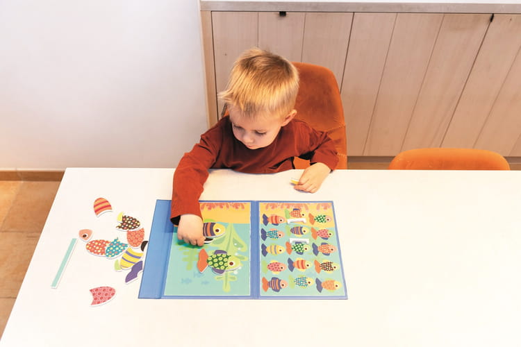 Do rozwiązania jest 15 kart zadań. Duże i grube magnesy (27 szt) ułatwiają pracę małych dłoni. Gra oprócz zabawy z kolorami i kształtami stymuluje takie umiejętności jak: logiczne myślenie, koncentrację, świadomość przestrzenną i percepcję wzrokową.