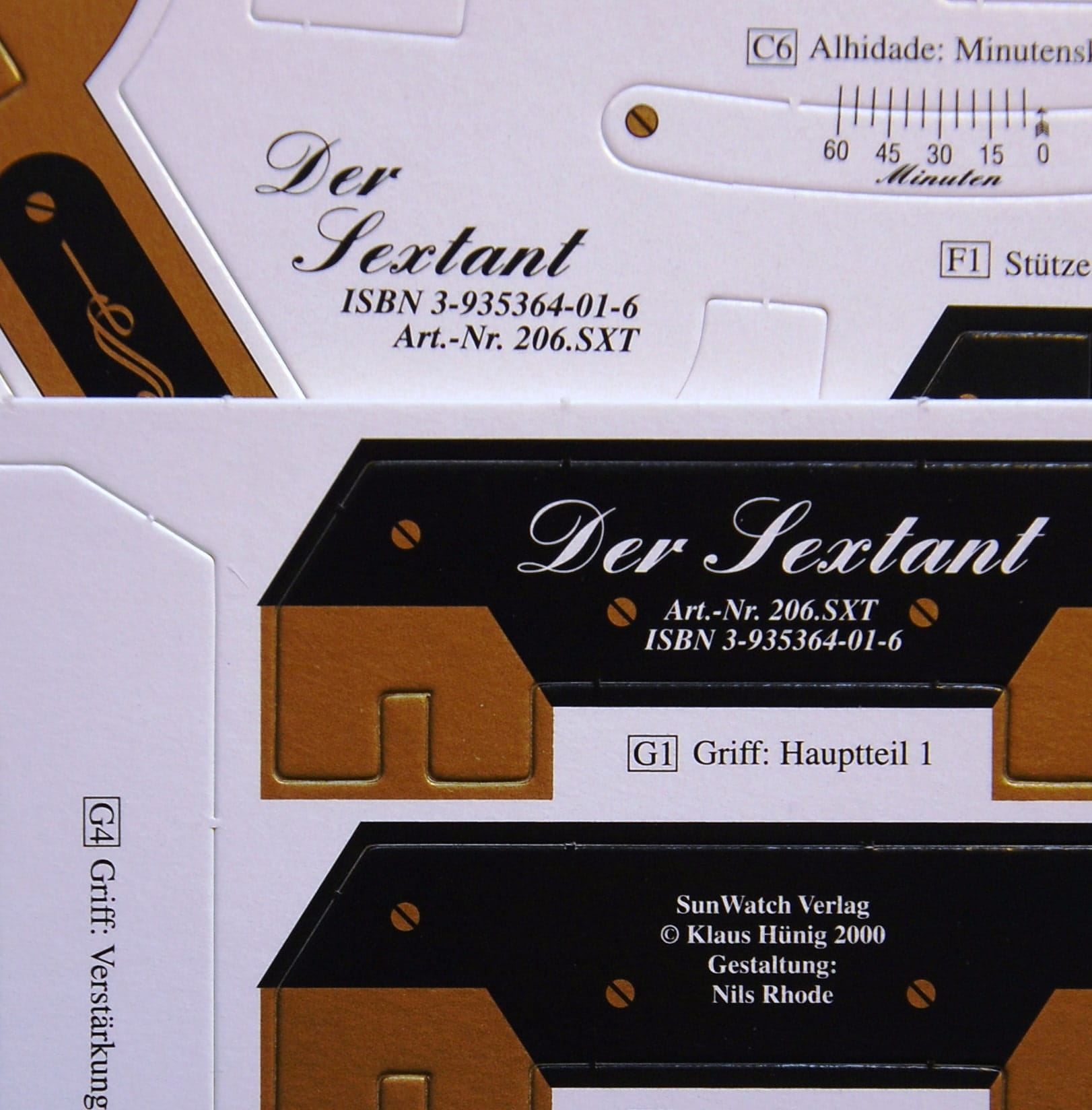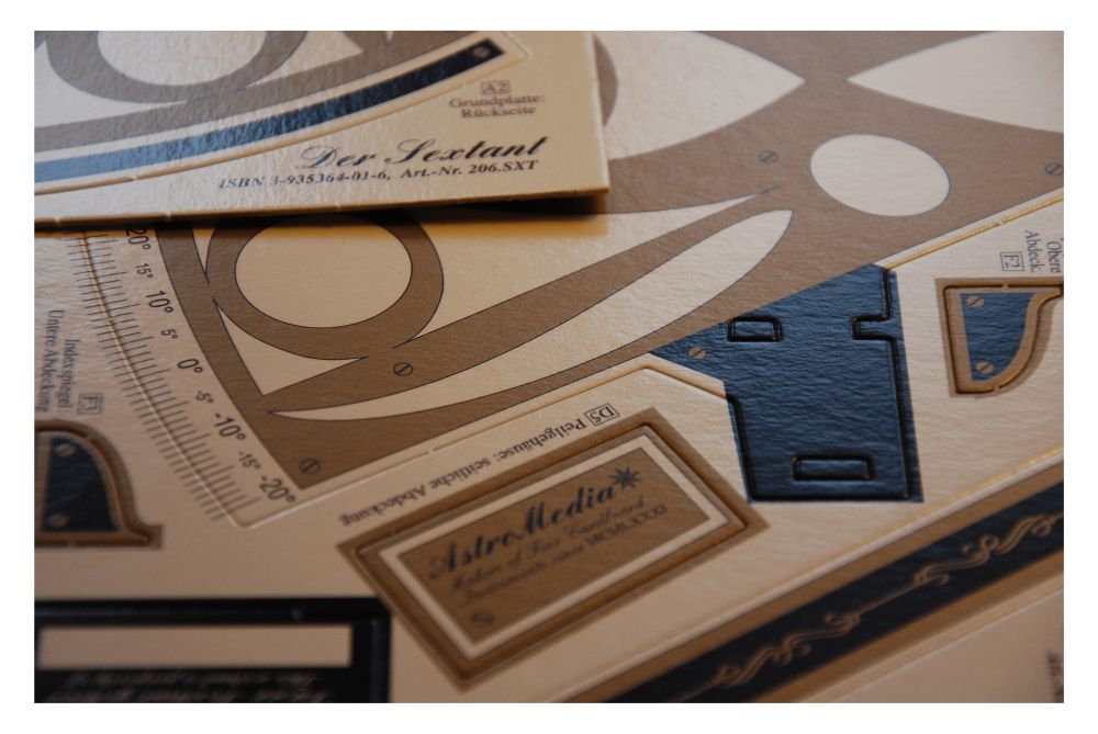 - 2 arkusze lakierowanego 1 mm kartonu zawierające elementy do budowy sekstantu;