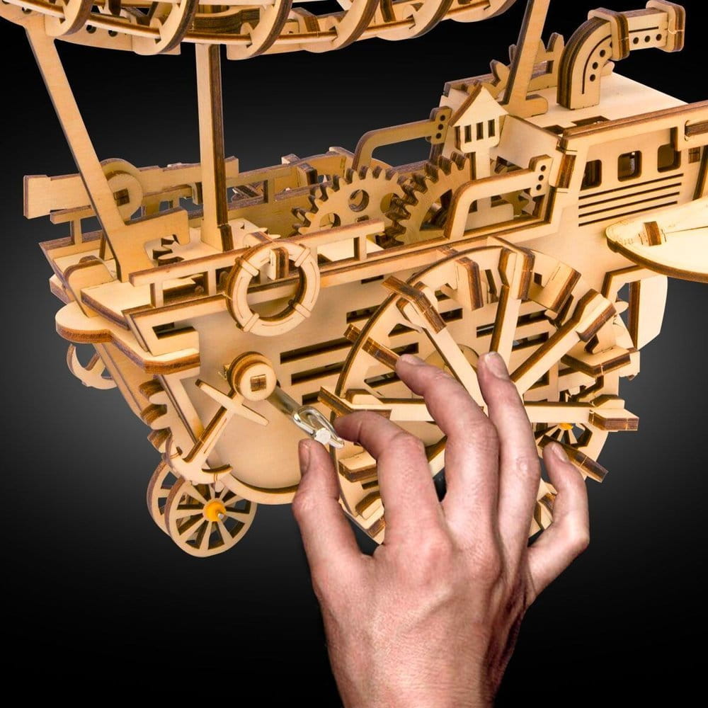 Sterowiec Robotime jest wzorowanym na prawdziwych statkach powietrznych modelem wykonanym z laserowo wycinanej sklejki drewnianej. Dzięki temu możesz go zbudować samodzielnie, łącząc precyzyjnie ponad 200 elementów bez użycia kleju. Gdy zaś model sterowca będzie gotowy, zakręć korbką i zajrzyj do wnętrza, zobacz, jak skomplikowany mechanizm z kół zębatych wprawia śmigło w ruch - Robotime - czas dla młodych inżynierów!