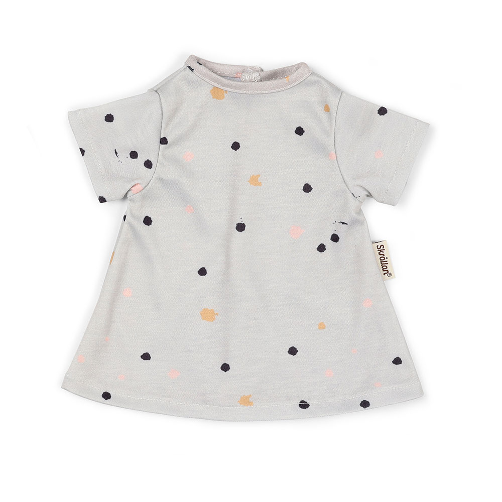 To jest ulubiona sukienka Twojej lalki, wykonana z miękkiego dżerseju udekorowanego kolorowymi plamkami w pastelowych kolorach na szarym tle. Ta sukienka ma zapięcie na rzep i można nosić ją zarówno na co dzień, jak i na specjalne okazje. Twórz nowe stylizacje łącząc ją z akcesoriami i ubraniami dla lalek marki Skrållan. Szwedzki design i wysoka jakość wykonania z dbałością o najmniejsze szczegóły są gwarancją dobrej zabawy dla dzieci w każdym wieku. Akcesoria sprzyjają rozwojowi kreatywności i rozwijają wyobraźnię.