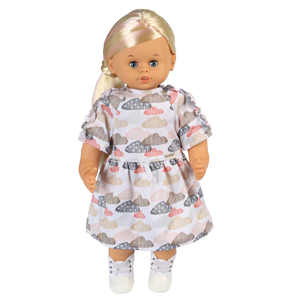 Ta stylowa sukienka jest ulubionym wyborem Twojej lalki zarówno na co dzień, jak i od święta. Wygodna oraz mięciutka w urocze kolorowe chmurki i udekorowana falbankami jest obowiązkowym strojem w szafie każdej lalki ceniącej sobie wygodę i dobry styl. Nie może jej również zabraknąć w szafie Twojej ukochanej lalki.