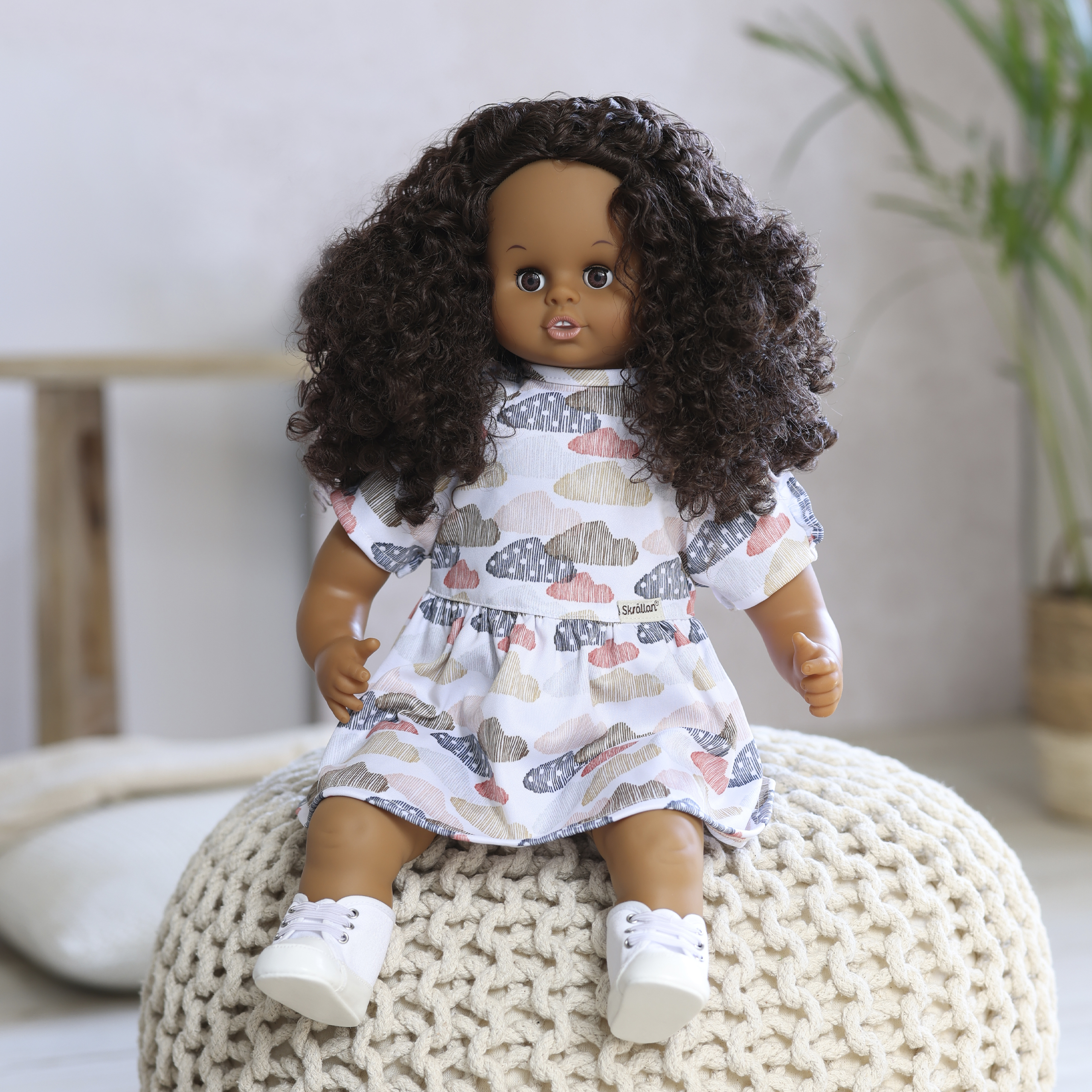 To jest ulubiona sukienka Twojej lalki, wykonana z miękkiego dżerseju z uroczymi detalami falbanek. Sukienkę zdobią kolorowe chmurki w pastelowych kolorach na białym tle. Ta sukienka ma zapięcie na rzep i można nosić ją zarówno na co dzień, jak i na specjalne okazje. Twórz nowe stylizacje łącząc ją z akcesoriami i ubraniami dla lalek marki Skrållan. Szwedzki design i wysoka jakość wykonania z dbałością o najmniejsze szczegóły są gwarancją dobrej zabawy dla dzieci w każdym wieku. Akcesoria sprzyjają rozwojowi kreatywności i rozwijają wyobraźnię.