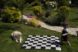 Szachownica ogrodowa, nylonowa o rozmiarze pola 15 cm. Wykonana z wytrzymałego i trwałego materiału, który jest odporny na czynniki zewnętrzne i ścieranie. Można ją złożyć do wygodnych, kompaktowych rozmiarów. Szachownica posiada otwory na krawędziach, dzięki czemu można ją zamocować do podłoża za pomocą dołączonych metalowych szpilek. Całość spakowana jest w nylonowy worek ze ściągaczem.