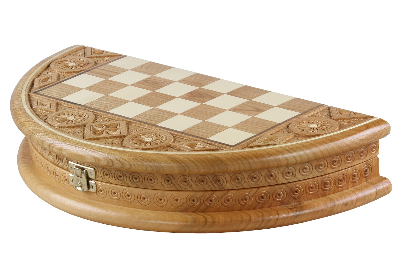 Szachy Rubin - ręcznie rzeźbiona okrągła kaseta (33cm)