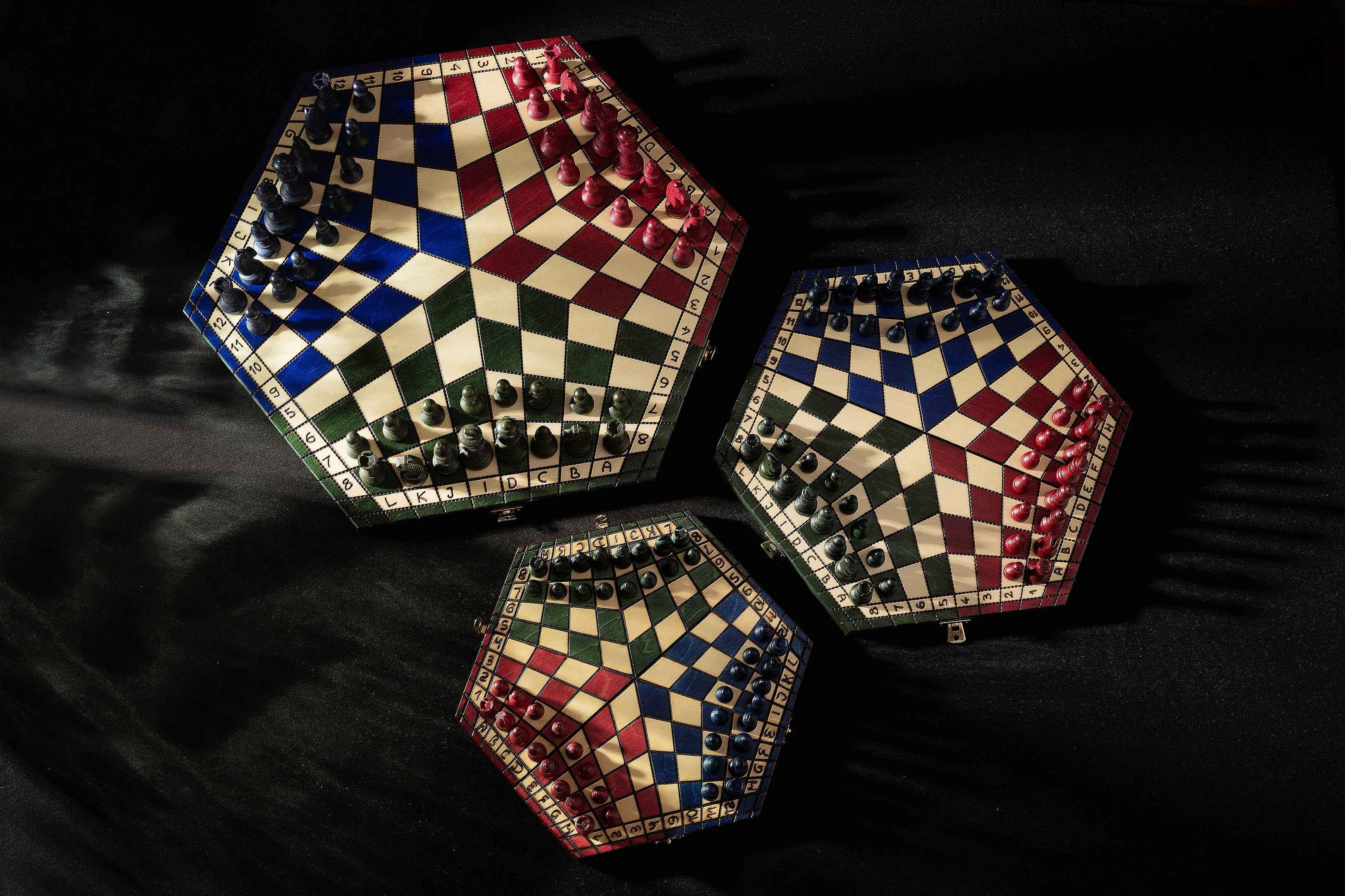 Unikalne szachy dla trzech graczy w rozmiarze Średnim - kasetka 35cm.