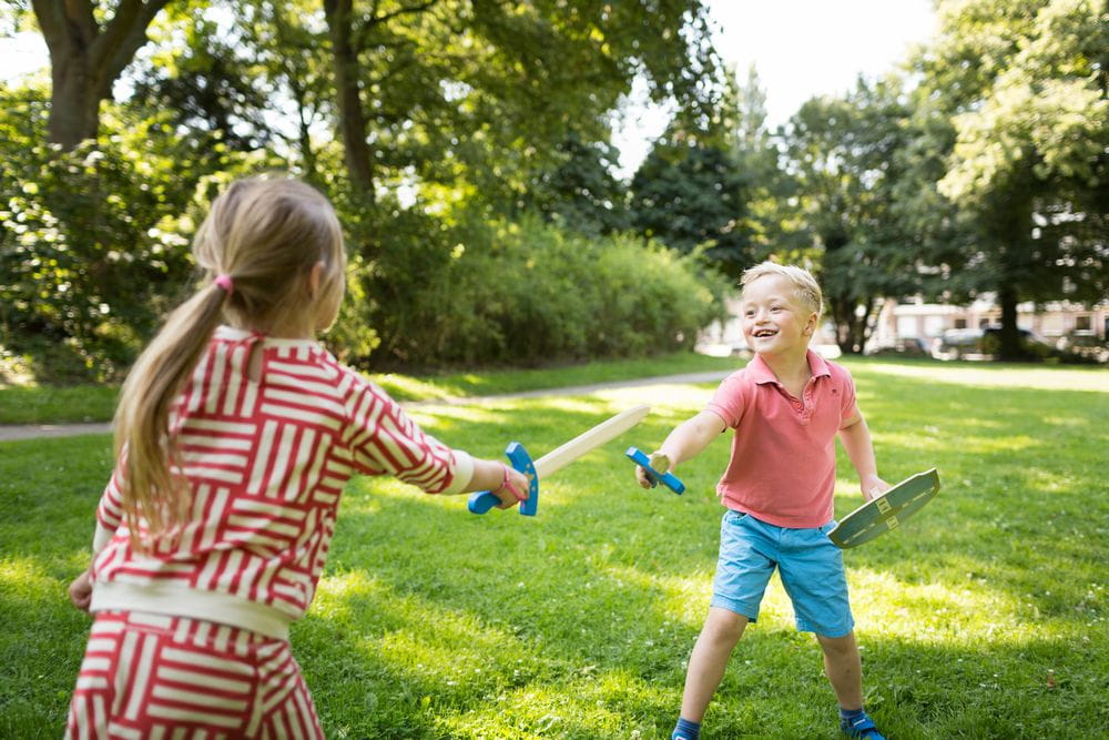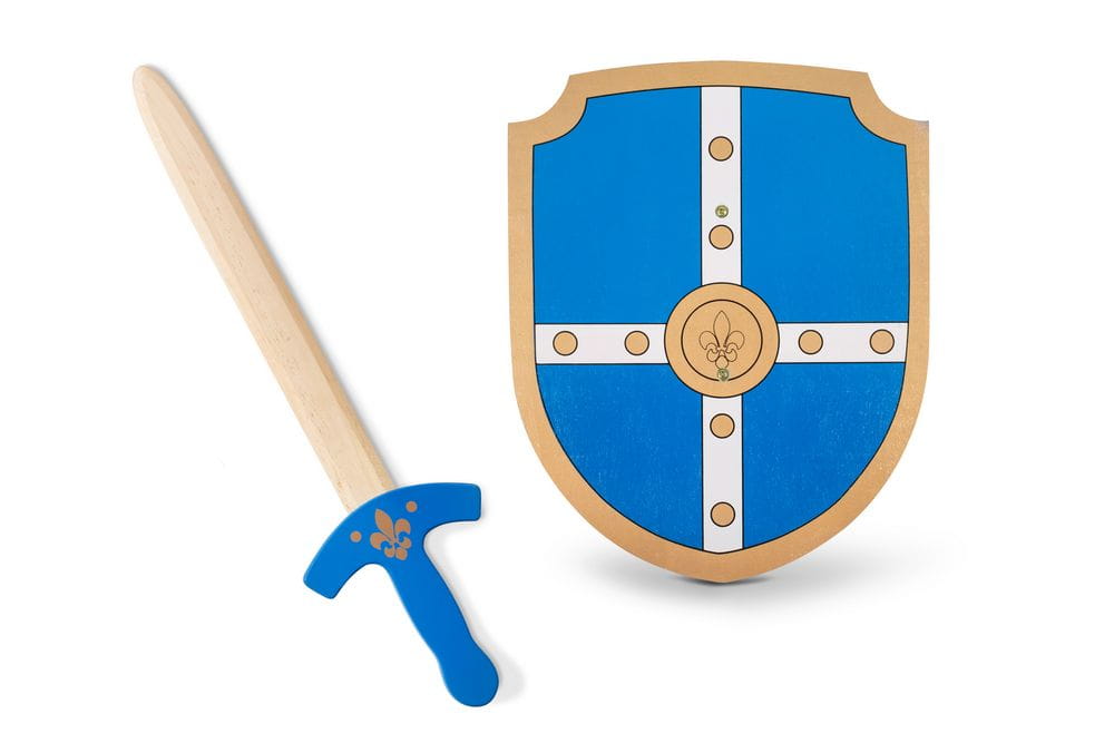 Drewniana tarcza BUITEN SPEEL dla młodych rycerzy.
