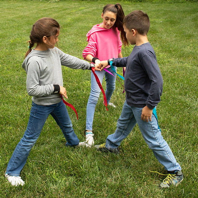 Gra Tasiemki wciąga zarówno dzieci jak i dorosłych, uwaga: można się mocno spocić!
