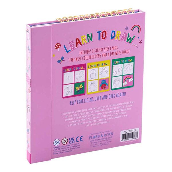 Wspaniały zestaw do nauki rysowania dla dzieci w prosty i zabawny sposób zachęci dziecko do rozpoczęcia przygody z nauką rysowania. Zestaw zawiera 8 grubych, błyszczących stron, 3 kolorowe suchościeralne pisaki z gumkami oraz sekcję do rysowania i kolorowania. Sposób narysowania każdej ilustracji przedstawiony jest w trzech prostych krokach, dzięki czemu nauka rysowania będzie dla każdego malucha łatwa i przyjemna. Zmazywalne strony pozwalają trenować bez końca. Zestaw składa się na płasko, posiada praktyczne magnetyczne zamknięcie i idealnie sprawdzi się w podróży. Zapraszamy do zabawy!