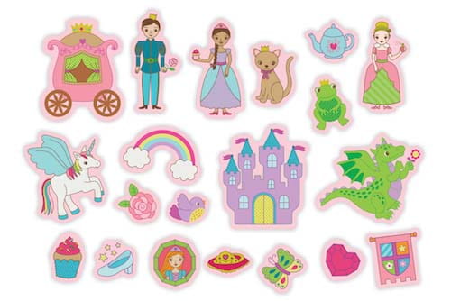 Tekturowe magnesy - Księżniczki. Wielokolorowe, lekkie magnesy o różnych rozmiarach i kształtach.
