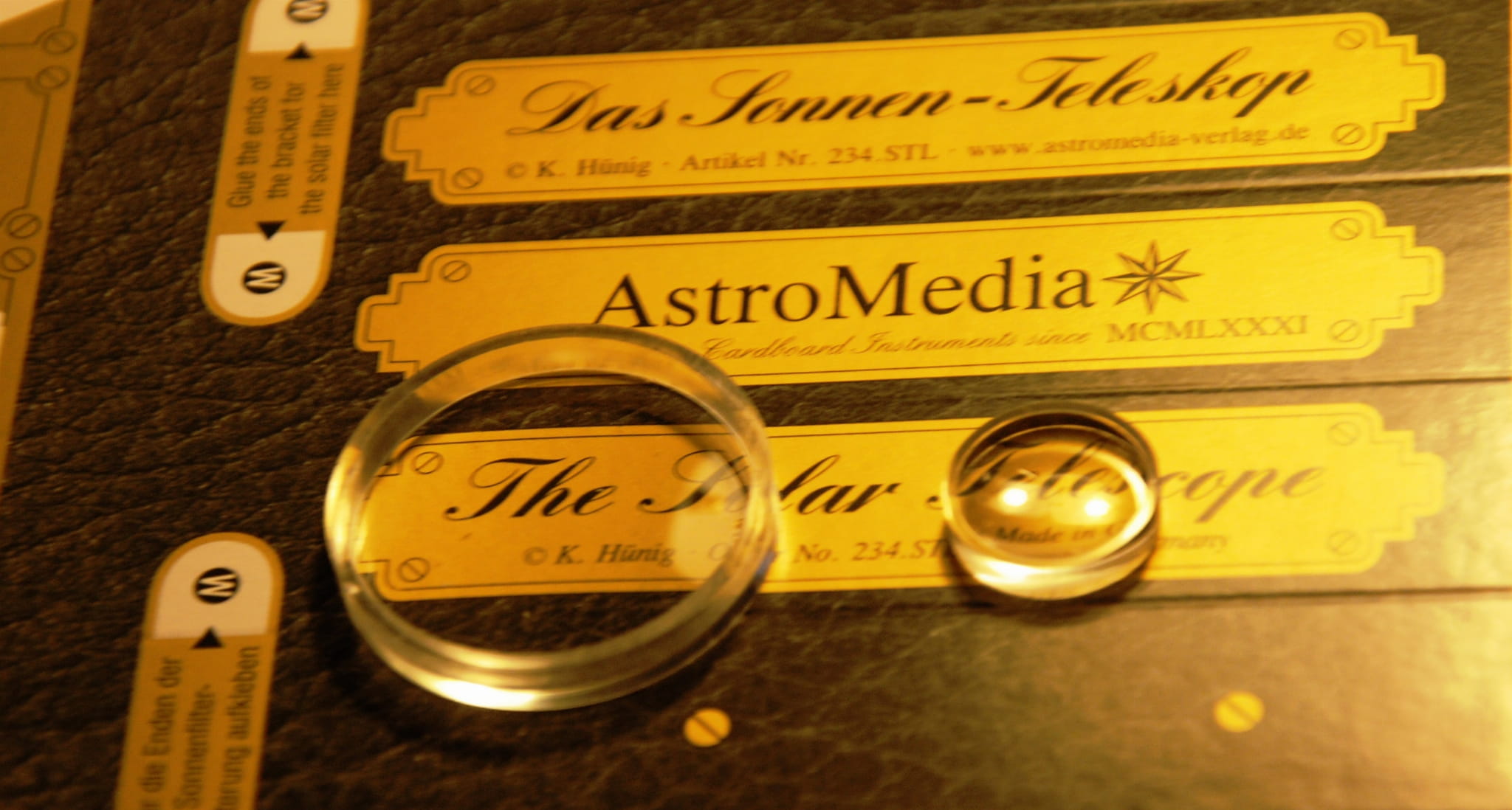 Teleskop słoneczny AstroMedia to przyrząd obserwacyjny do samodzielnego złożenia, który umożliwi obserwowanie Słońca, a po wyjęciu filtra słonecznego można prowadzić przy jego pomocy obserwacje naziemne, gdyż zapewnia 6,5-krotne przybliżenie.