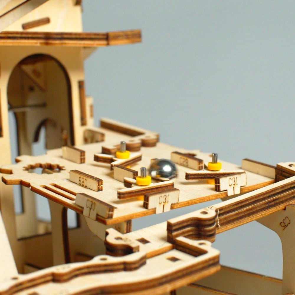 Tor dla kulek - drewniany model 3D z mechanizmem do wynoszenia kulek na górę od Robotime. Godziny wspaniałej zabawy: najpierw w zbudowanie modelu, a potem obserwowanie kuleczek.