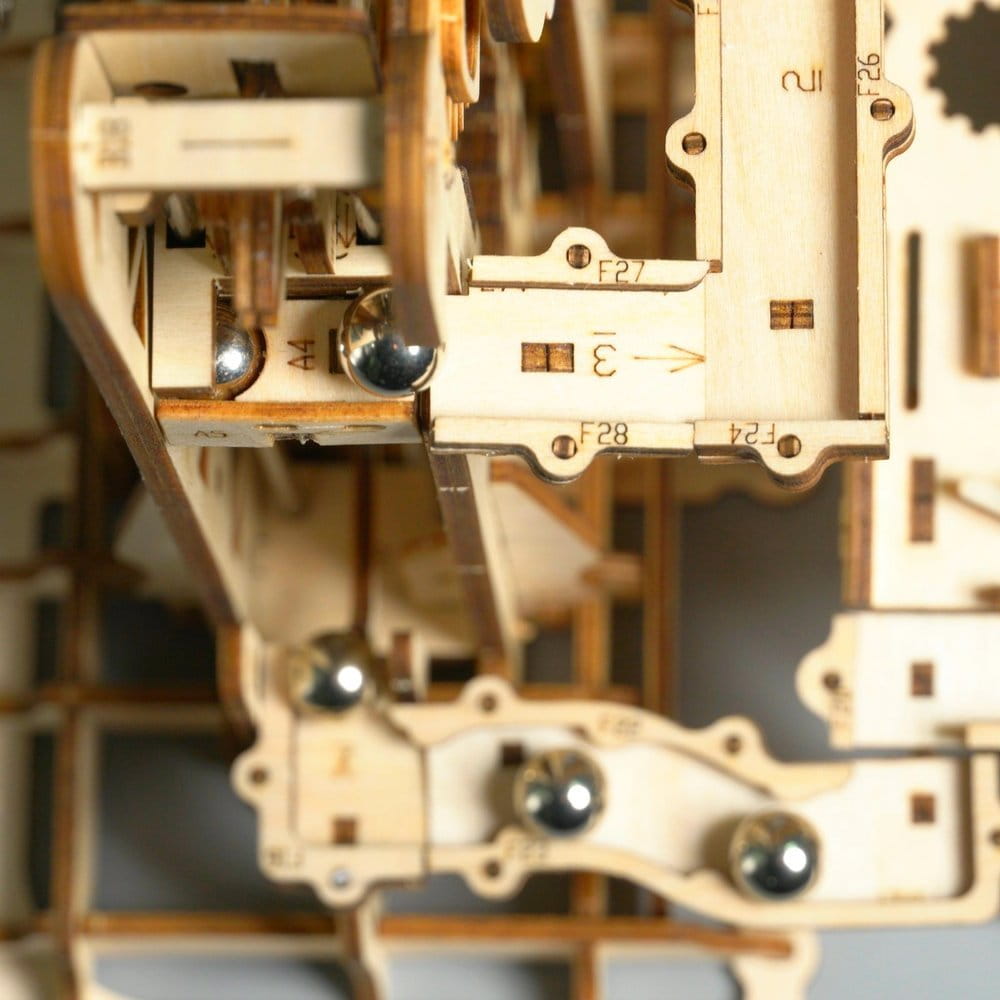 Z drewnianym modelem 3D od Robotime możesz być pewien, że wszystkie, laserowo wycięte elementy będą do siebie idealnie pasować. Do ich łączenia nie są potrzebne żadne narzędzia ani klej. Wiele detali, a także intrygujący wygląd sprawią, że tor dla kulek stanie się dekoracją każdego wnętrza.