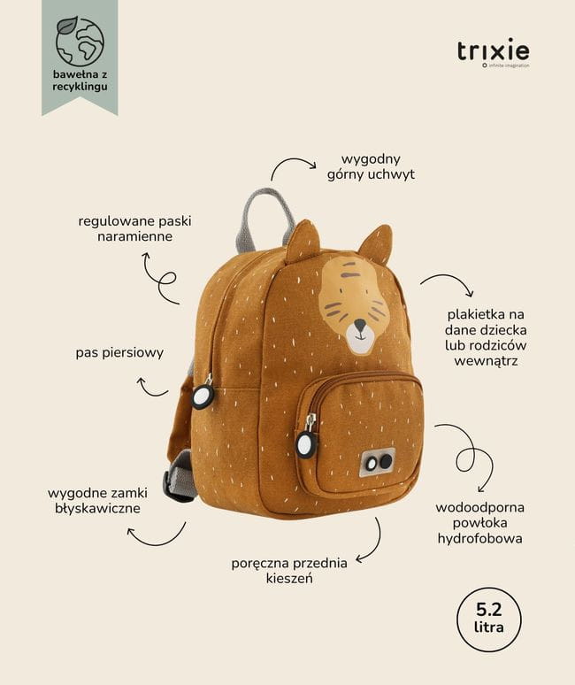 Wyjątkowo lekki i pojemny plecak mały z wesołym zwierzakiem, zaprojektowany z myślą o komforcie i funkcjonalności najmłodszych. Wyróżnia się niepowtarzalnym wzornictwem i unikalną kolorystyką. Pomieści przekąski, akcesoria do codziennej opieki lub ulubione zabawki bez problemu. Dzięki niemu dziecko jest przygotowane na każdą wycieczkę i przygody w przedszkolu.
