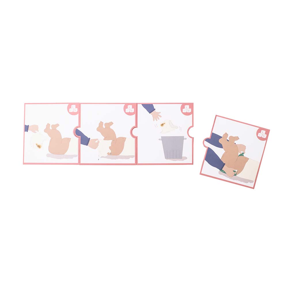 Ten specjalnie zaprojektowany zestaw do codziennego praktykowania zmiany pieluszki poprzez odgrywanie ról z lalką Baby, uczy Twoje dziecko jego własnej rutyny, która pomaga zadbać o pielęgnację i higienę. Zestaw zawiera 2 pary kolorowych pieluchomajtek, 2 ręczniczki, pluszowe siusiu i pluszową kupkę oraz karty ze scenariuszem zabawy wskazujące poszczególne sekwencje.