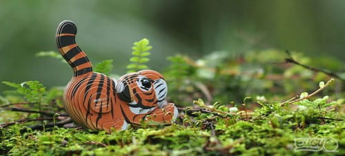 Tygrys to kartonowa układanka przestrzenna nowozelandzkiej marki Eugy, która składa się z ok. 25 elementów. Poszczególne części należy skleić zgodnie z numeracją, aby oczom ukazał się tygrys.