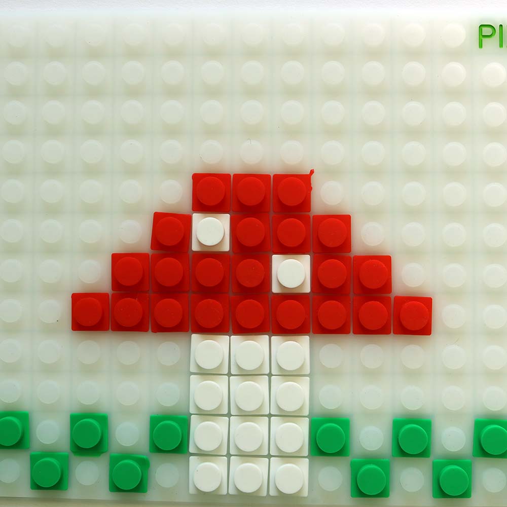 - 360 silikonowych klocków/pikseli w 6 kolorach (białym, czarnym, czerwonym, zielonym, niebieskim i żółtym),
