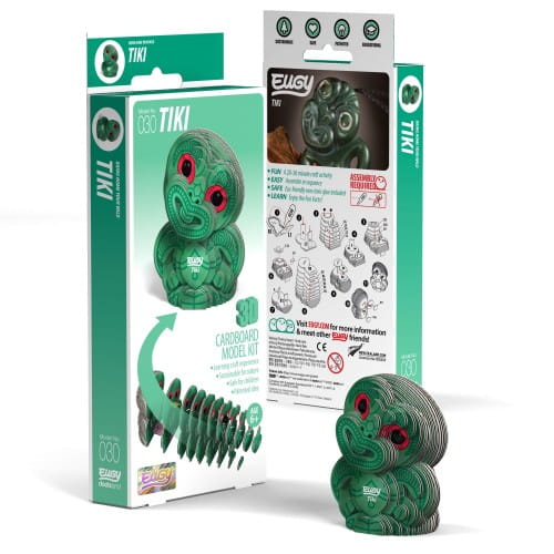 Tiki to kartonowa układanka przestrzenna nowozelandzkiej marki Eugy, która składa się z ok. 25 elementów. Poszczególne części należy skleić zgodnie z numeracją, aby oczom ukazał się uroczy ludzik. Całość wykonana z kartonu z recyklingu i połączona przy użyciu bezpiecznego kleju.