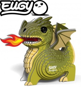 Przestrzenna figurka smoka od Eugy. Kartonowa układanka marki Eugy składa się z ok. 26 elementów. Poszczególne części skleja się wg numerów, aby powstało zwierzątko. Całość wykonana z kartonu z recyklingu i połączona przy użyciu bezpiecznego kleju.