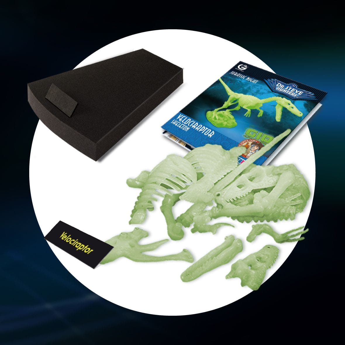 Jurrasic Night - szkielet dinozaura VELOCIRAPTOR, który świeci w ciemności, długość 27 cm - model do złożenia od Geoworld GEO1652.