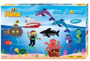 WODNY ŚWIAT - zestaw koralików MIDI do zaprasowania lub szycia z 3 podkładkami, 6000 sztuk HAMA, symbol 3035.