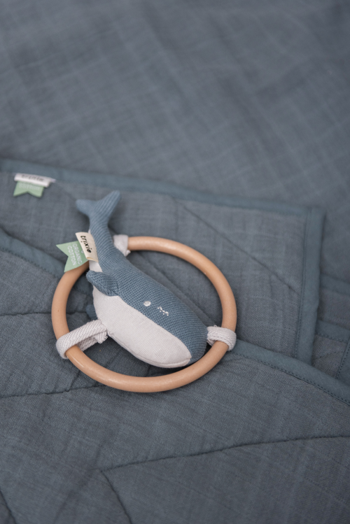 Materiał: 100% bawełna organiczna; wypełnienie: 100% PES z recyklingu; drewno