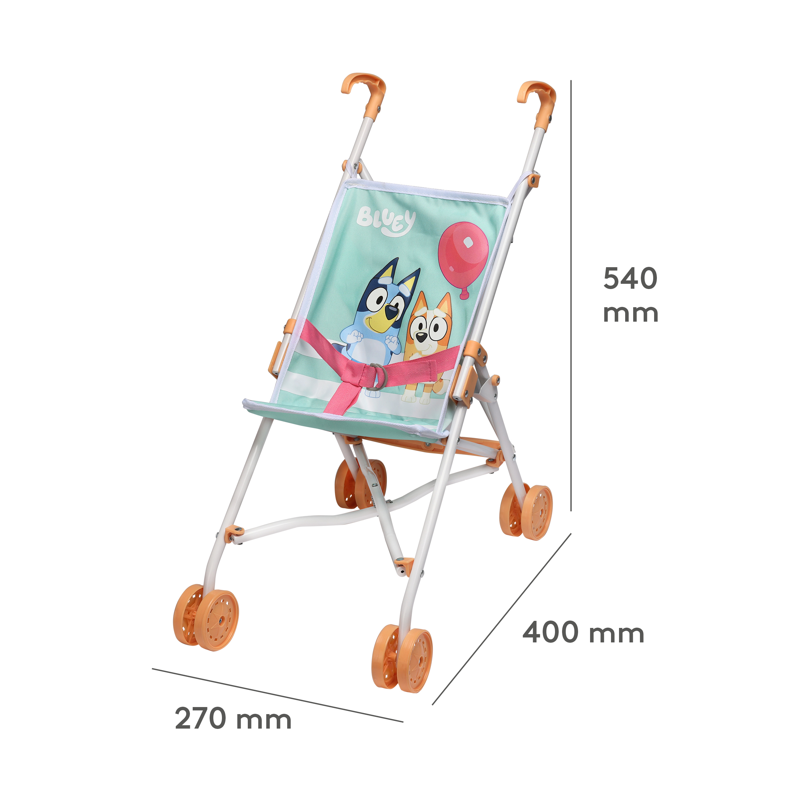 Urocza lekka spacerówka pasuje do lalek o wysokości do 45 cm, ma zdejmowaną tapicerkę oraz pasy bezpieczeństwa i składa się dzięki czemu można z nią podróżować lub wygodnie ją przechowywać. Zabawka została starannie wykonana z motywem Bluey na podstawie oryginalnych postaci z kreskówki o tym samym tytule. Ten śliczny wózeczek dla lalek rozwija umiejętności społeczne Twojego dziecka i zapewnia długie godziny radosnej zabawy.