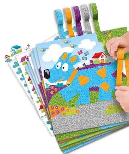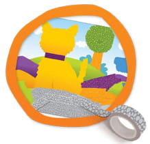 Twórz oryginalne krajobrazy i obrazki na przykład ze zwierzakami używając do tego kolorowych taśm we wzory. Dodaj do nich naklejki przedstawiające domki, inne zwierzątka itd.