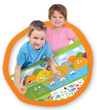 Wyklejanka widoczki - uzupełnij krajobrazy różnymi wzorami na przykład zwierzaków przy pomocy kolorowych taśm. Nie zapomnij tez o naklejkach.