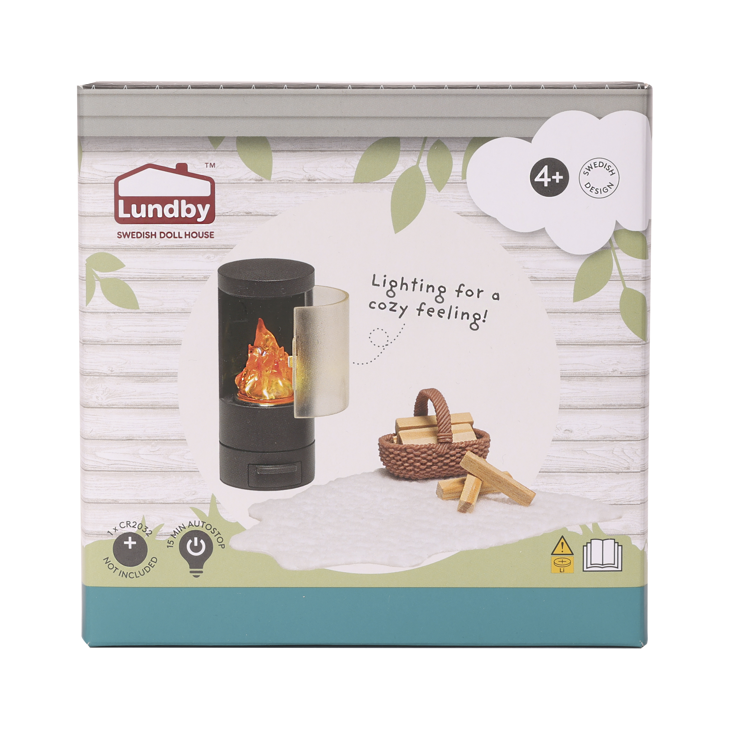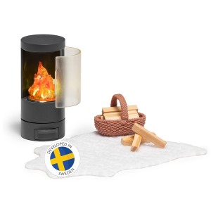 Kominek nie tylko ogrzewa domek dla lalek marki Lundby, ale tworzy cudowną atmosferę dostarczając niezapomnianych emocji z zabawy Twojemu dziecku. Ten stylowy, zaprojektowany w Szwecji zestaw zawiera czarny kominek, dywanik imitujący owczą skórę oraz koszyczek z drewnem opałowym. Wewnątrz kominka jest ogień z prawdziwym oświetleniem LED, które zawiera wbudowany timer dla jeszcze lepszej, realistycznej zabawy.
