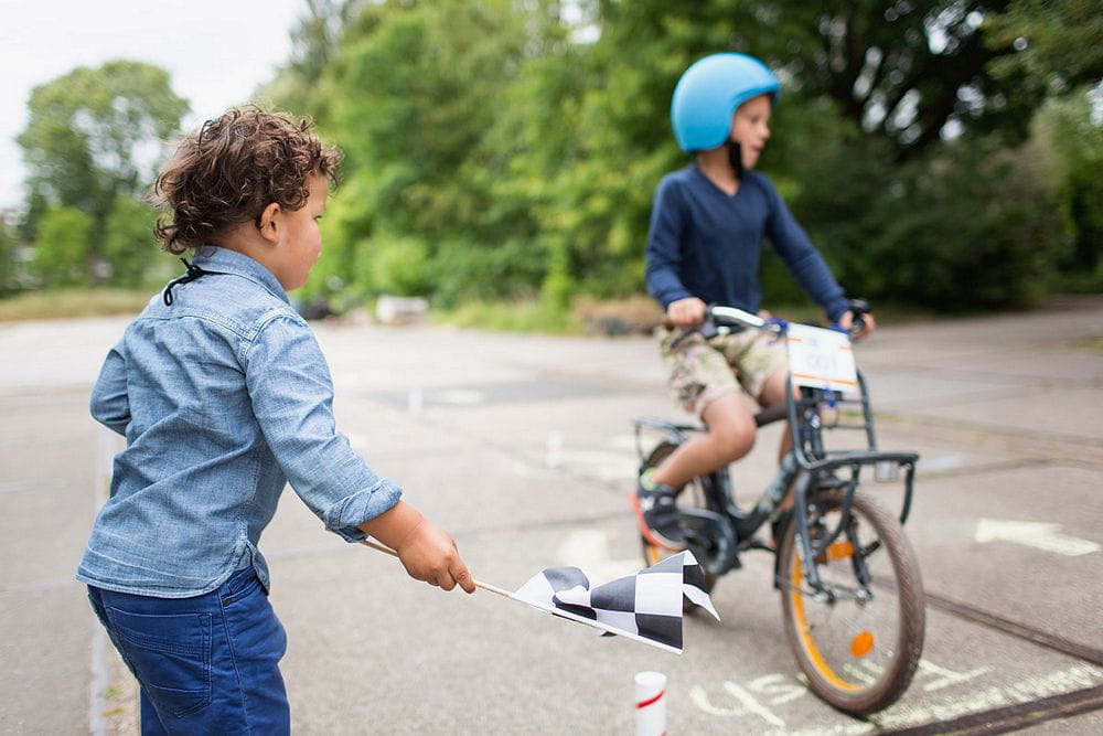 Na początku należy wyznaczyć trasę: najłatwiej oznaczyć ją kredą, na końcu zaś ustawiamy pionki. Zawodnikom należy przymocować numery startowe, a sędziego wyposażyć w stoper i flagę do oznaczania mety. Można zaczynać wyścig, a zwycięzca zostanie uhonorowany pięknym medalem.
