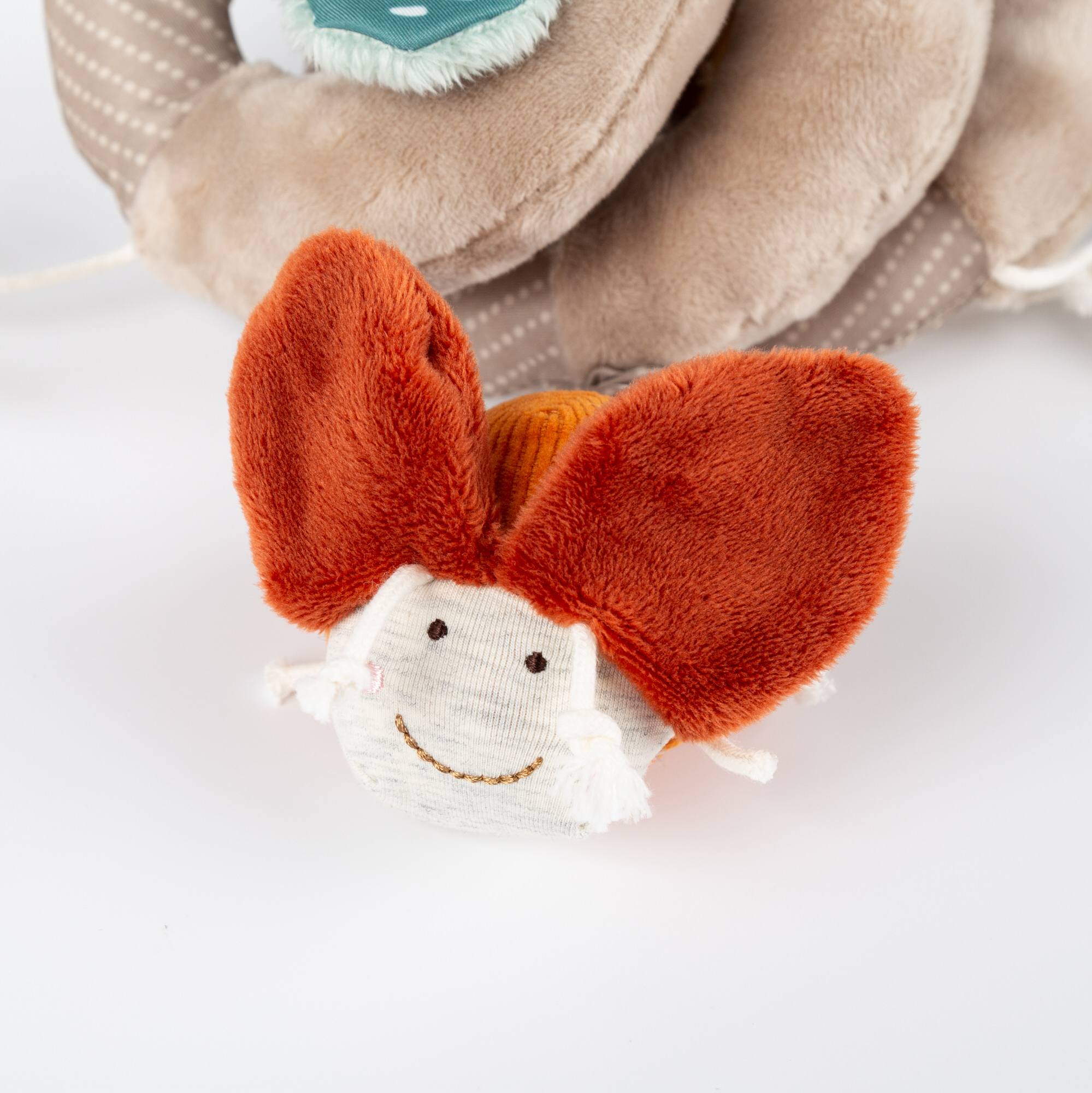 Spirala Motyle stymuluje zmysły dzięki przemyślanemu projektowi, wielu angażującym aktywnościom do odkrywania i różnorodnej strukturze miękkiej w dotyku tkaniny. Zabawka zachęca do eksplorowania, jest łatwa do uchwycenia i trzymania przez małe rączki.